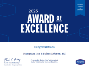As the only Hampton Inn with an on-site wine bar, our newly renovated Hampton Inn & Suites at Shelton Vineyards offers the ultimate “sip and stay” experience in North Carolina wine country. Guests can unwind with a glass of Shelton Vineyards wine in our modern lounge, browse local favorites in the wine shop, and enjoy spacious one-room suites with amenities like a fitness center, free breakfast, and cozy gathering spaces.